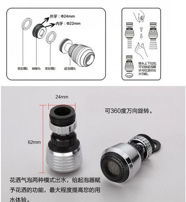 | Odaklan | 360 döner ABS plastik esnek mutfak duş musluk duş başlıkları 2 işlevleri, mutfak lavabosu musluk duşu için kolayca. |